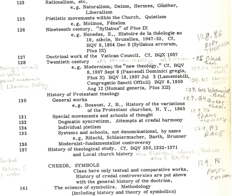 Read more: Classification – a mix of 3 systems! (part 2)On a first and superficial look it seems like the Heythrop Library uses the Library of Congress Classification (LCC), but this is not true. There are some classmarks which look like LCC, but are in fact an adaptation: the Lynn-Peterson scheme (first edition from 1937! The Library nowadays makes also one radical change from LCC to…